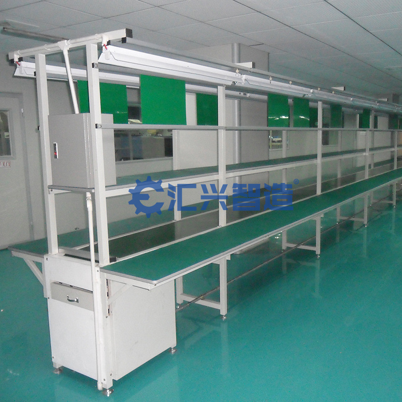 皮帶機(jī)結(jié)構(gòu)形式有:槽型皮帶機(jī)、平型皮帶機(jī)、爬坡皮帶機(jī)、轉(zhuǎn)彎皮帶機(jī)等多種形式,輸送帶上還可增設(shè)提升擋板、裙邊等附件,能滿足各種工藝要求。輸送機(jī)兩側(cè)配以工作臺(tái)、加裝燈架,可作為電子儀表裝配,食品包裝等皮帶機(jī)裝配線。