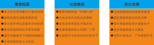 到2021年,初步構建起示范特色鮮明、工素供給體系完備、配套鏈條完善、公共服務齊全的智能制造產業鏈。