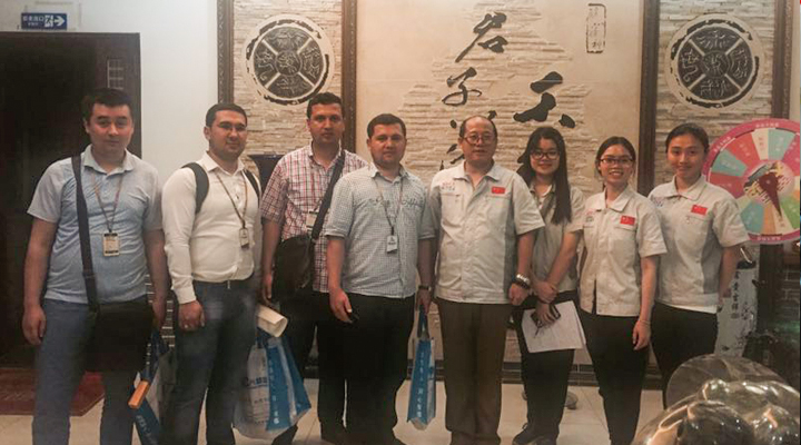 系統集成事業一部副總監林顯明與烏茲別克斯坦客戶進行技術研討、商務洽談