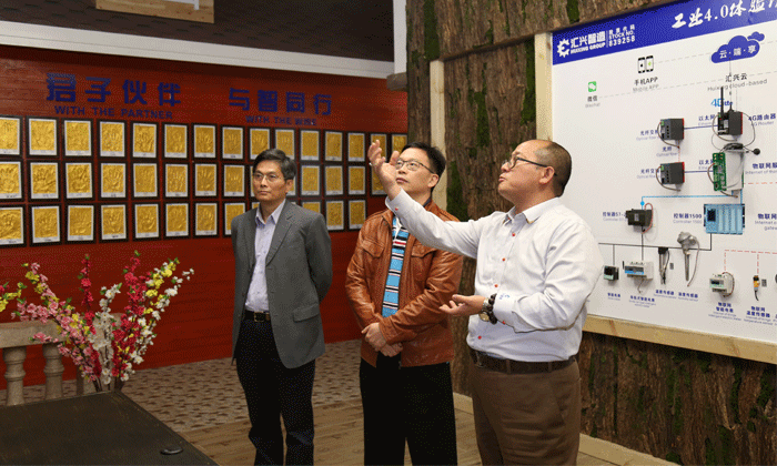 匯興智造董事長鐘輝為劉常委一行介紹了公司發展歷程、公司概況、產品概況、發展優勢、企業文化、企業愿景、研發創新方面的成果、公司研發的現狀與需求及公司未來發展規劃等內容。聽完鐘董的匯報,劉常委對匯興智造科技研發創新工作豎起大大的贊并鼓勵繼續發揮自身優勢,堅持創新科技發展方向,提升自身影響力,讓企業的知名度和產品更廣泛得到市場的認可。