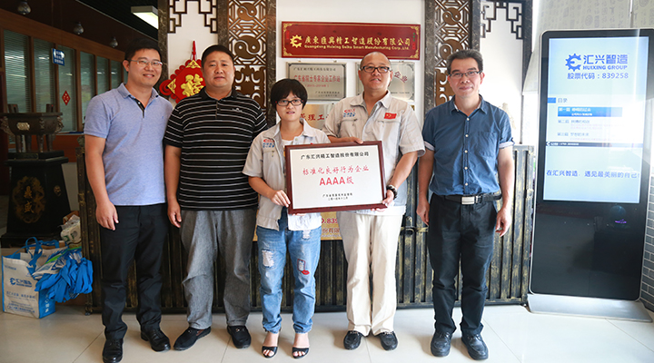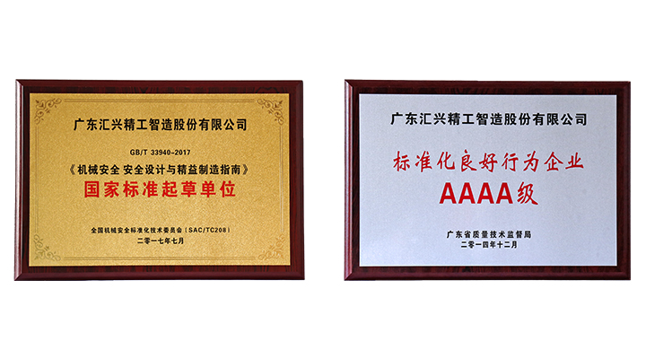 2017年8月30日,經(jīng)廣東省質(zhì)量技術(shù)監(jiān)督局、省標準化協(xié)會專家組的現(xiàn)場評審,廣東匯興精工智造股份有限公司(股票代碼:839258)再度獲評為“AAAA級標準化良好行為企業(yè)”及《機械安全 安全設(shè)計與精益制造指南》國家標準起草單位,在行業(yè)中到示范引領(lǐng)作用。
