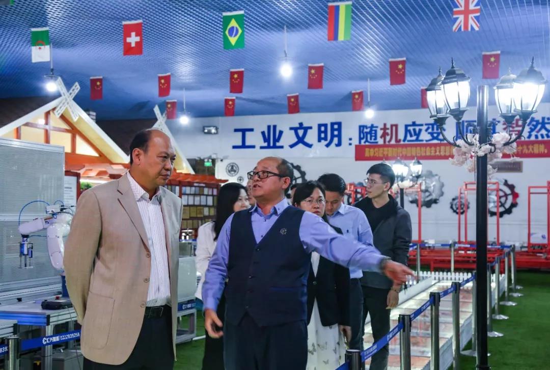楊曉棠常委一行參觀智能制造工業4.0體驗館、黨建陣地、社會主義核心價值觀宣傳長廊、中德智能裝備研究院等。董事長鐘輝介紹了公司發展概況,并匯報了公司增資擴產、項目用地進展等企業運營情況。