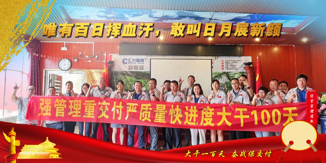 “決戰”的號角已經吹響,一場沒有硝煙的戰役已經開啟,在接下來的100天里,匯興智造的全體員工將以昂揚的姿態奮勇前行,向著目標全力沖刺!
