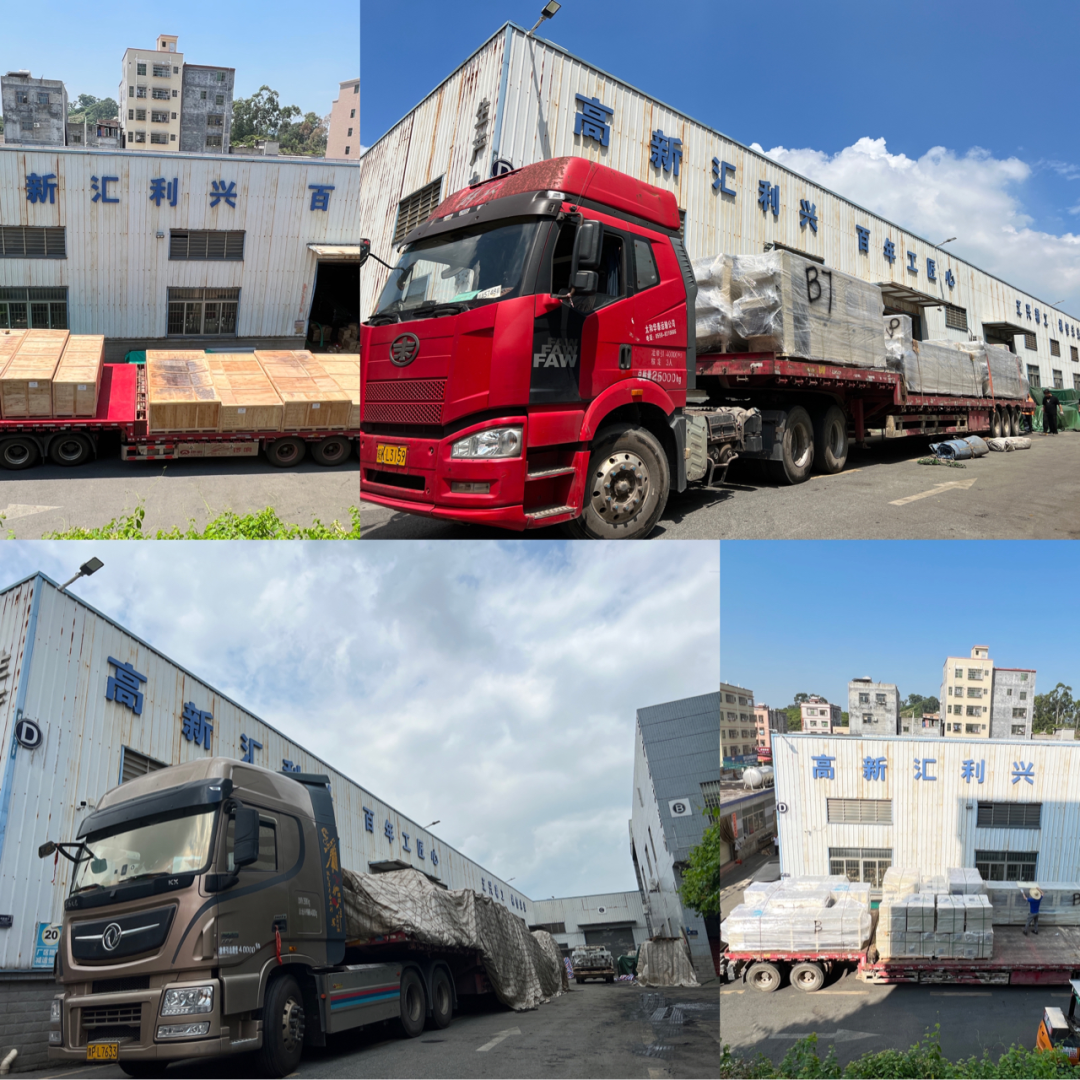 ,待檢查完,滿載貨物的數輛運輸車緩緩駛出,發往客戶項目現場。