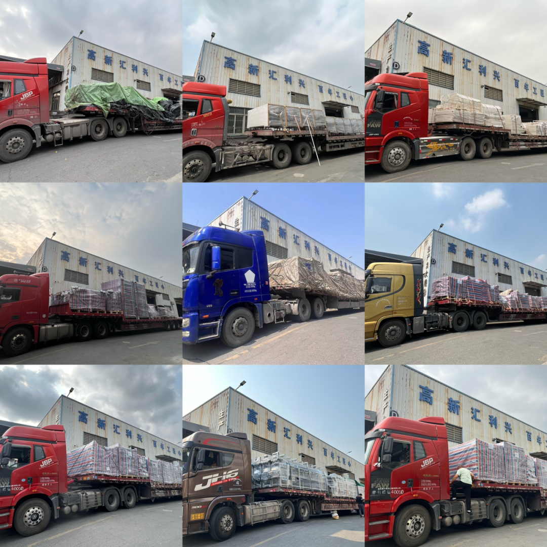 匯興智造總部工廠迎來春季出貨的高峰期!廠區內,一輛輛大貨車排起長龍,各種叉車、搬運來回穿梭,一派熱鬧繁忙的景象。